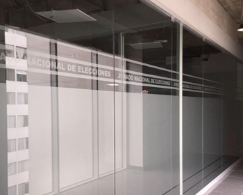 Diseño oficinas JNE, mamparas, baldosas y tabiques en Cercado de Lima.