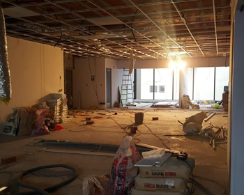 Implementación de oficinas y espacios en general, revestimientos, tabiquería, carpintería en madera y metálica, falsos cielos, vidrios, coberturas, sanitarias, iluminación, pintura, proyectos llave en mano.